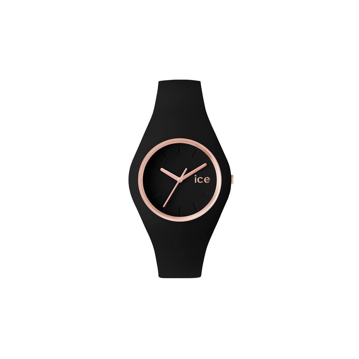 ICE Unisex silicone band watch GLAM black line with rose gold coloured dial and hands