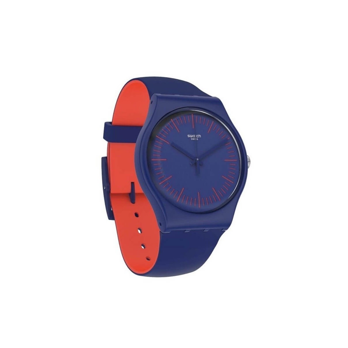 Features Swatch Blue and Red Watch - SUON146: