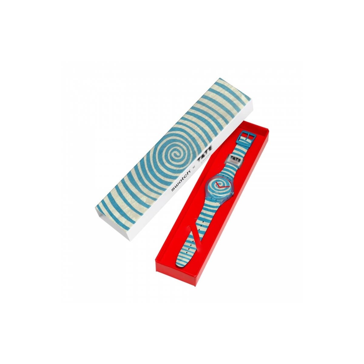 Unisex watch, Swatch X Tate Gallery line, quartz time only. The clock depicts the work Spirali.