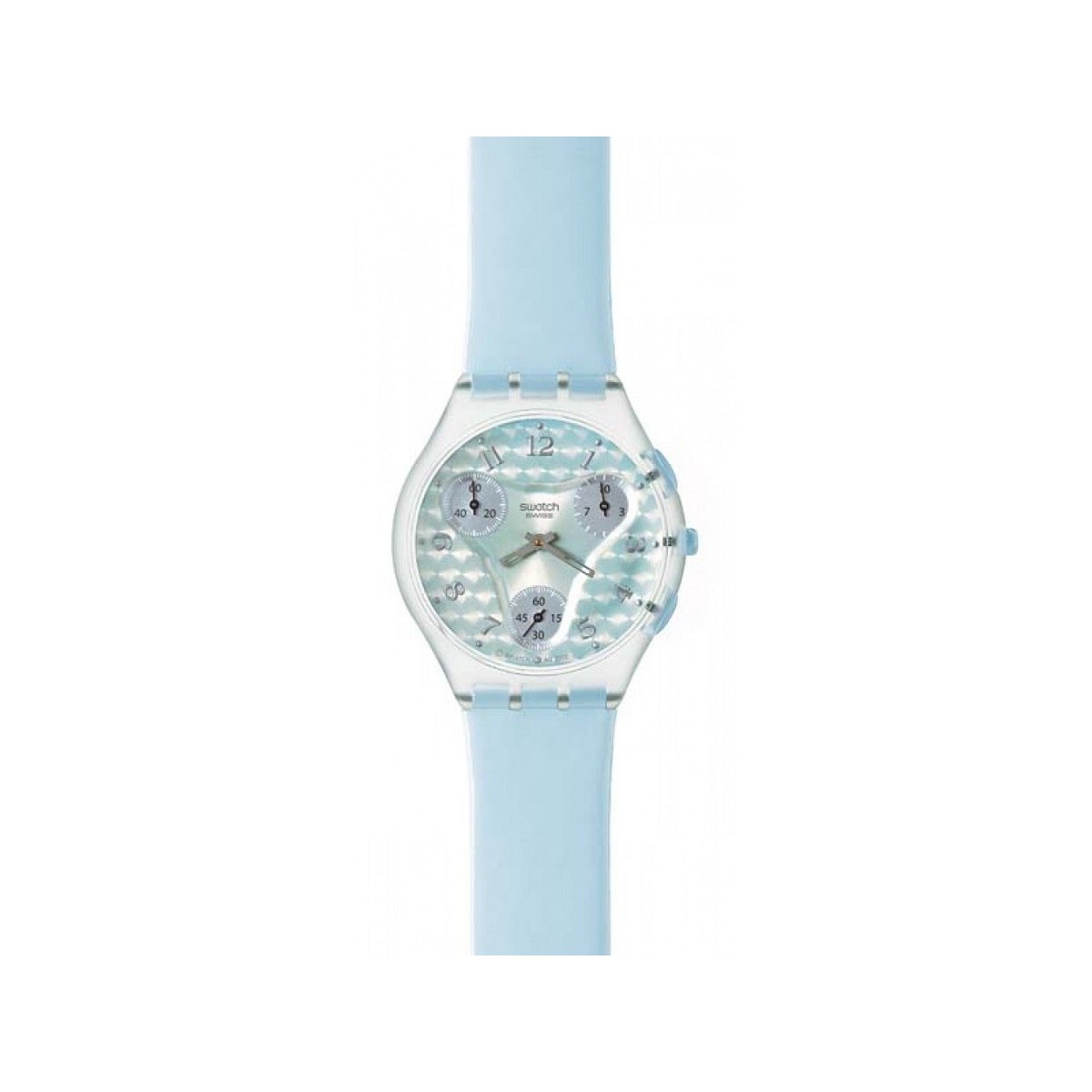 Turquoise leather strap, silver dial and transparent case