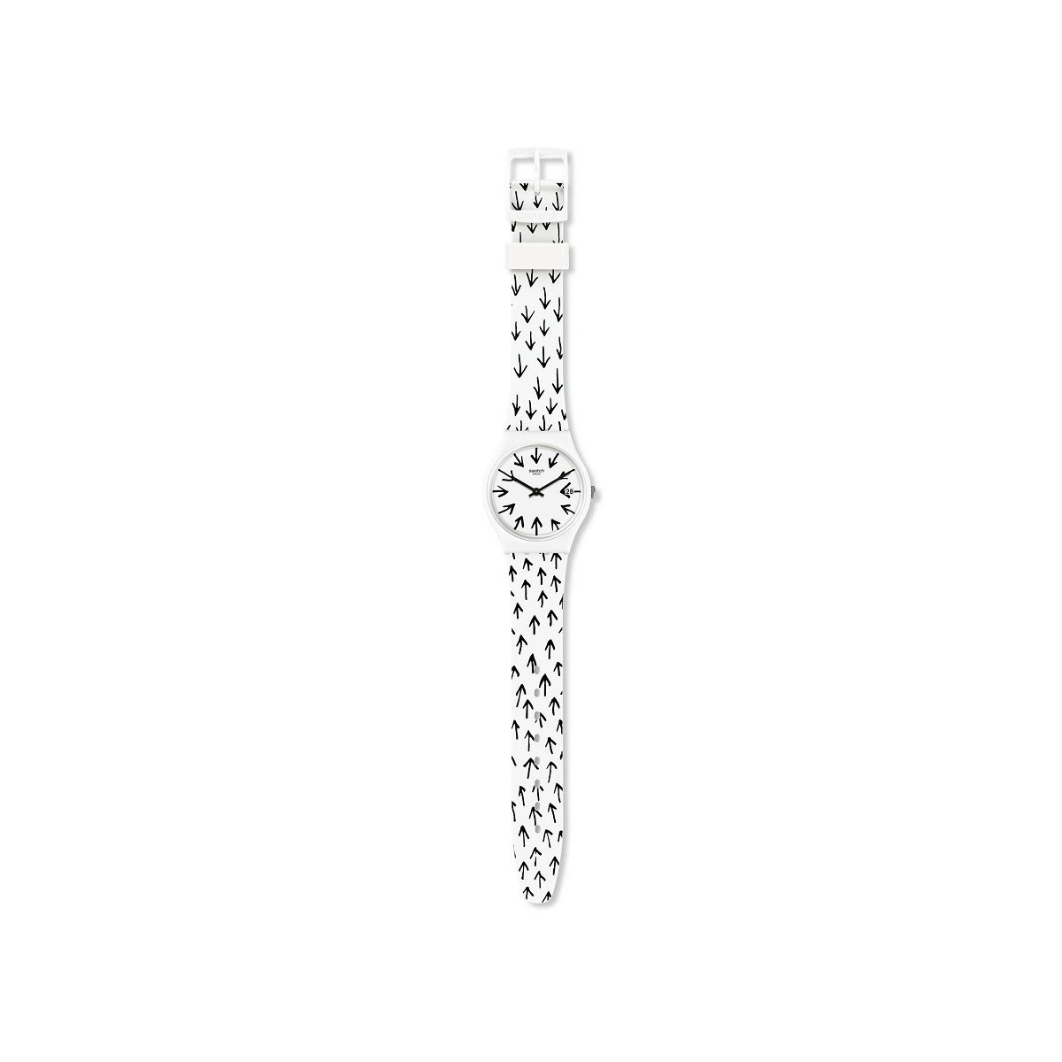 Gent FRECHIA 34 mm Worldhood collection with white dial with black indexes, plastic case and fancy silicone strap black arrows; quartz movement