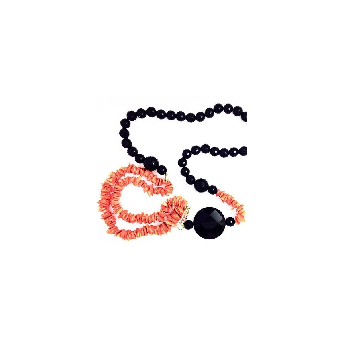 Robigiò natural Coral and Onix long Necklace with gold 18kt