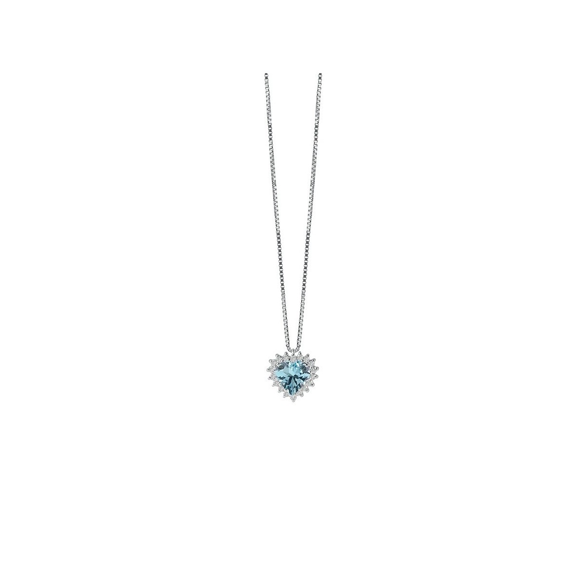 18kt white gold necklace with a pendant set with natural diamonds pavé and aquamarine from the CAPRI collection