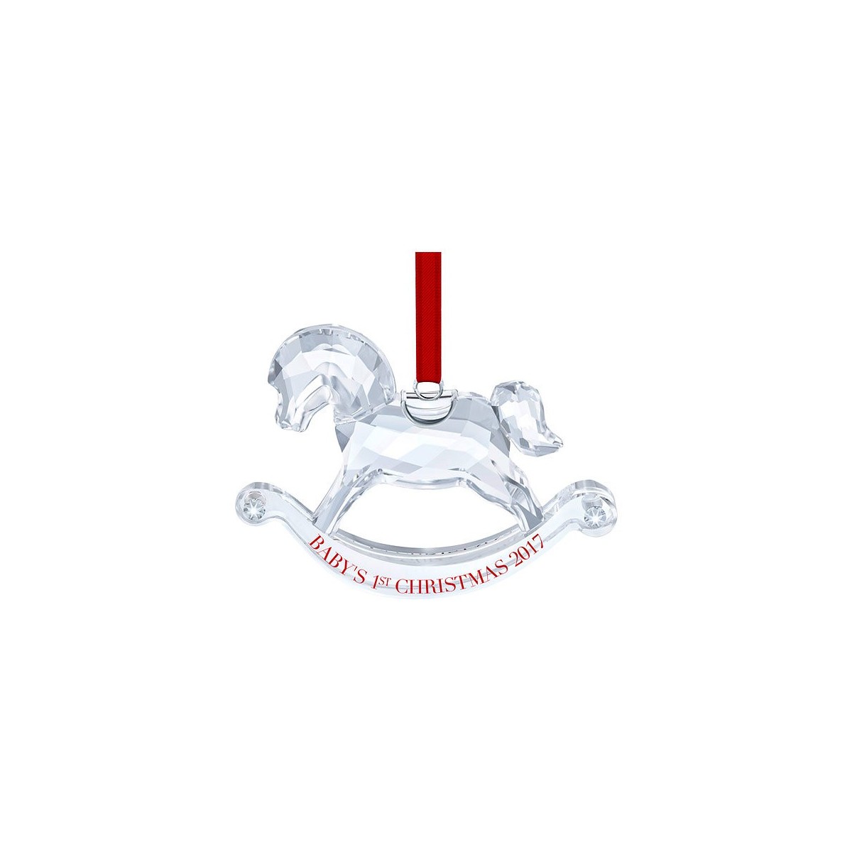 Celebrate the first Christmas of a baby with this stylish Rocking Horse in Clear Crystal. Suspended on a festive red satin ribbon with the elegant "Baby's 1st Christmas 2017" engraved on the base, the creation is only available this year. A perfect gift idea. Decorative object. It's not a toy. Not suitable for children under 15 years of age.