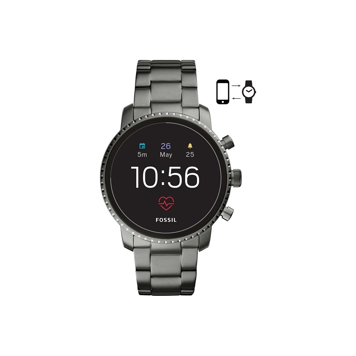 Classic design. Modern technology. This 45 mm Q Explorist HR touchscreen is characterized by a smoky gray steel bracelet and allows you to monitor your heartbeat, receive notifications, customize your watch face and much more.
