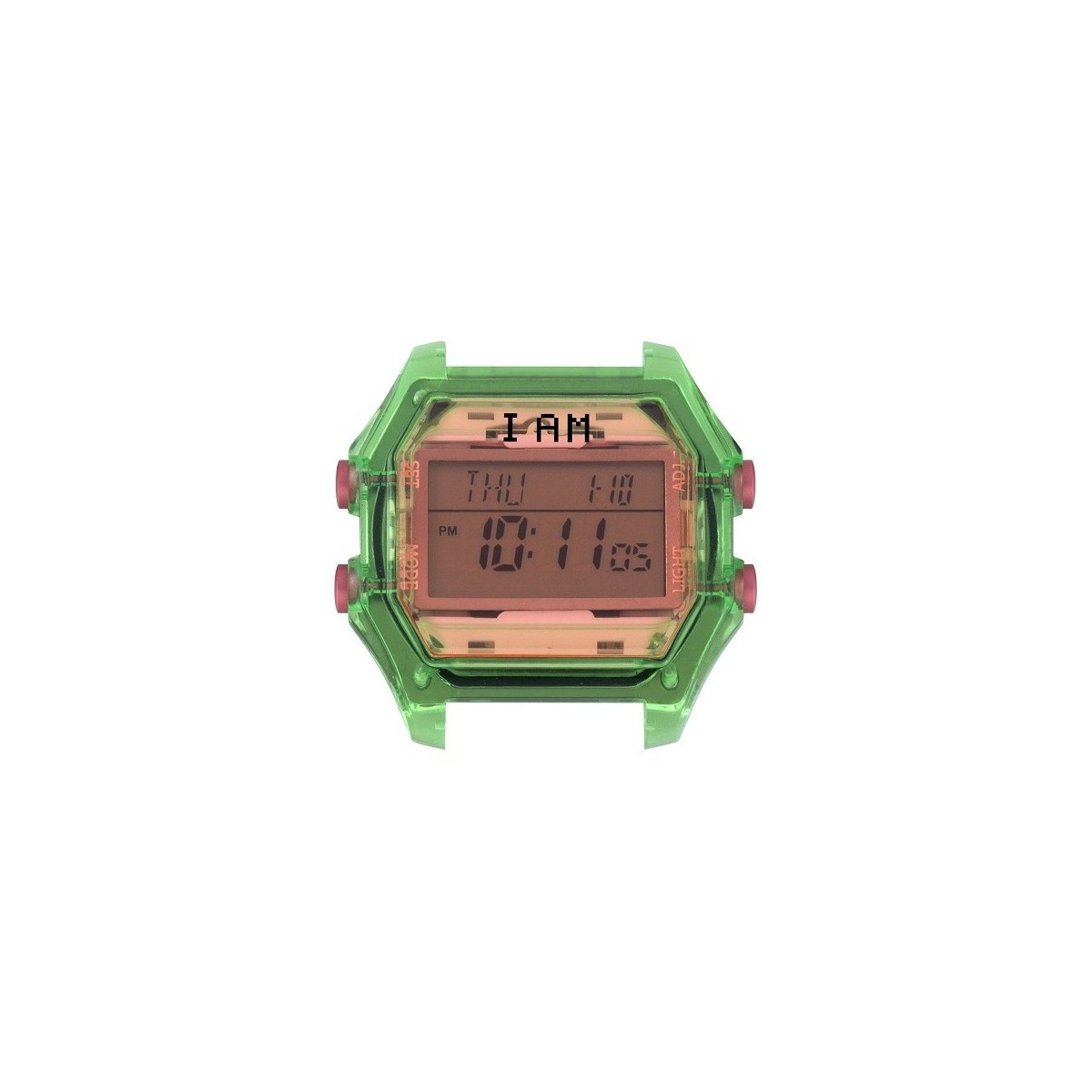 I AM medium watch case made of transparent green polycarbonate with four buttons and a salt colored quadrant and quartz digital movement - IAMTHEWATCH
