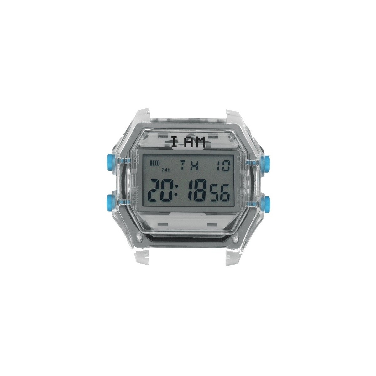 I AM large watch case in transparent gray polycarbonate with four celestial buttons, gray dial and quartz digital movement - IAMTHEWATCH