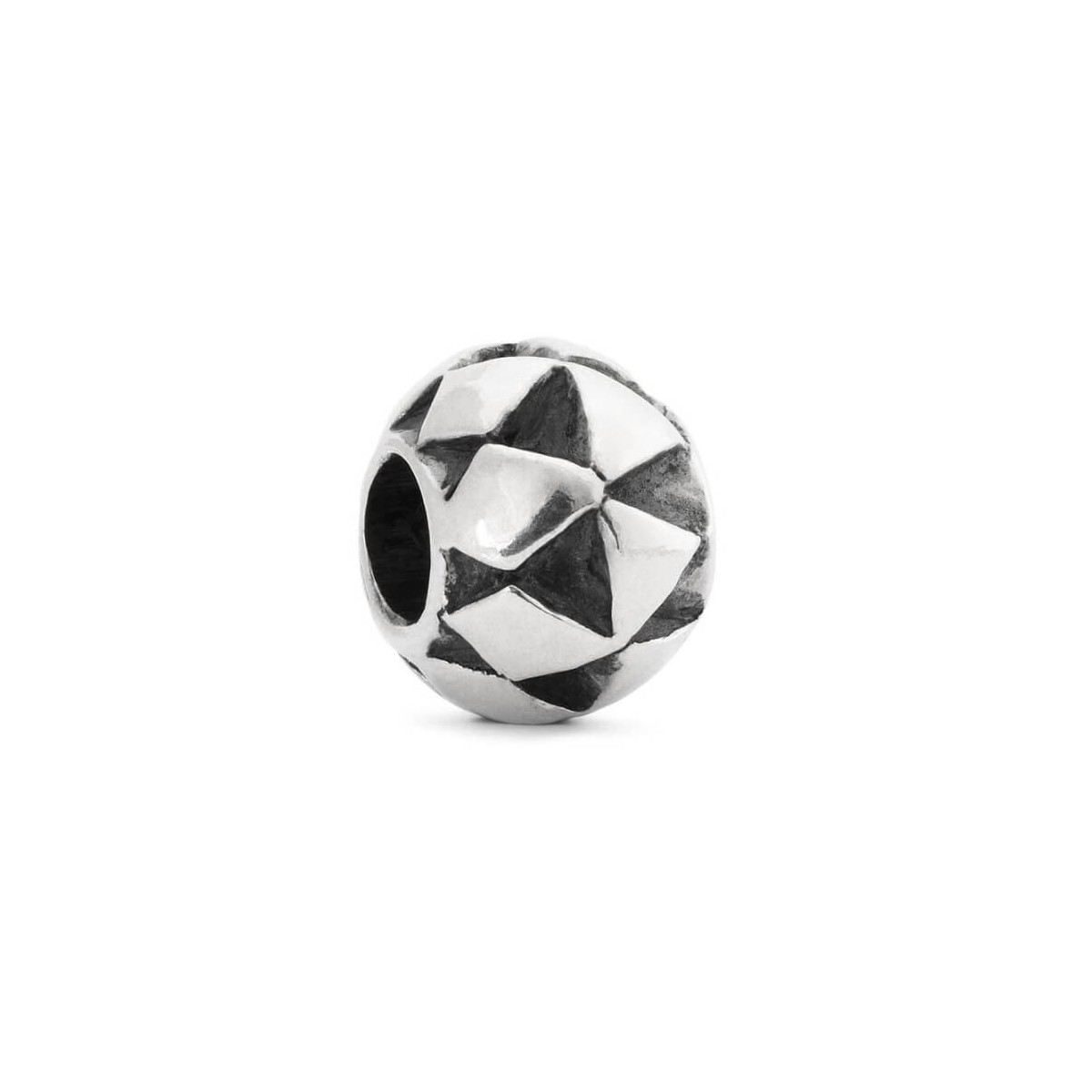 Bead out of production in 925 silver Featuring a round cushion with geometric workmanship.