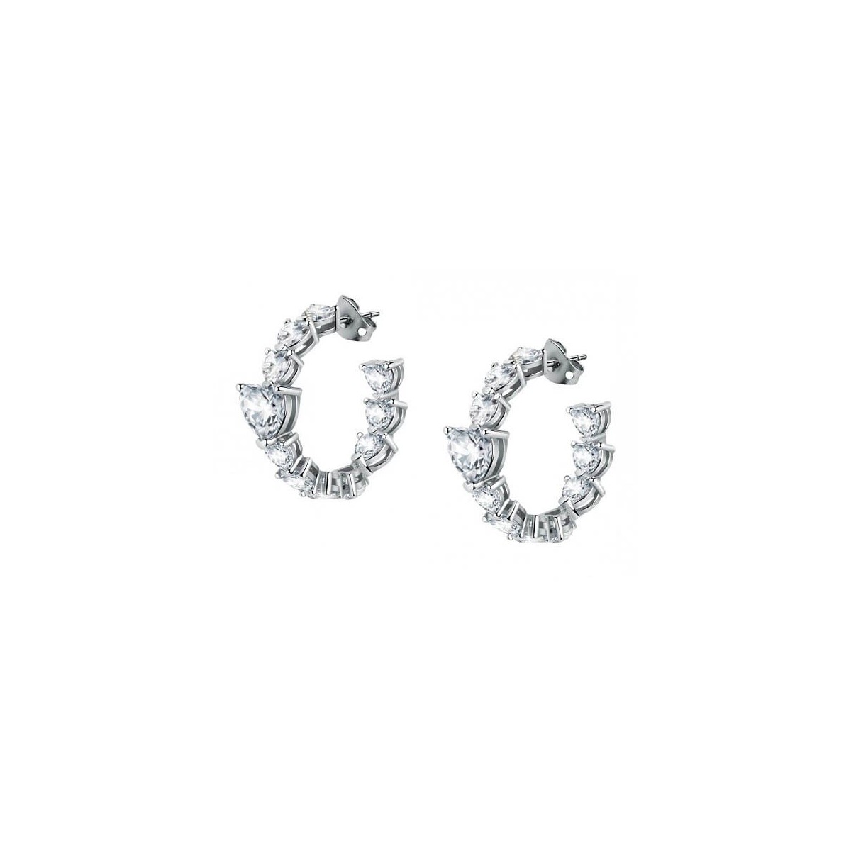 Hoop earrings from the Infinity Love collection with white heart-cut zircons and large central heart
