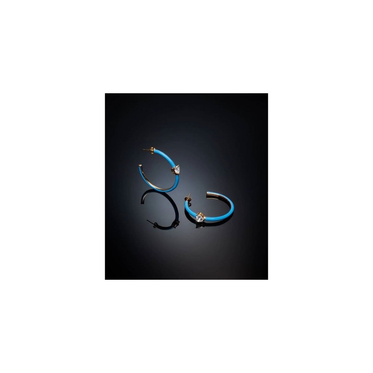 Blue enamelled maxi circle earrings from the Love Parade collection and central white heart crystal