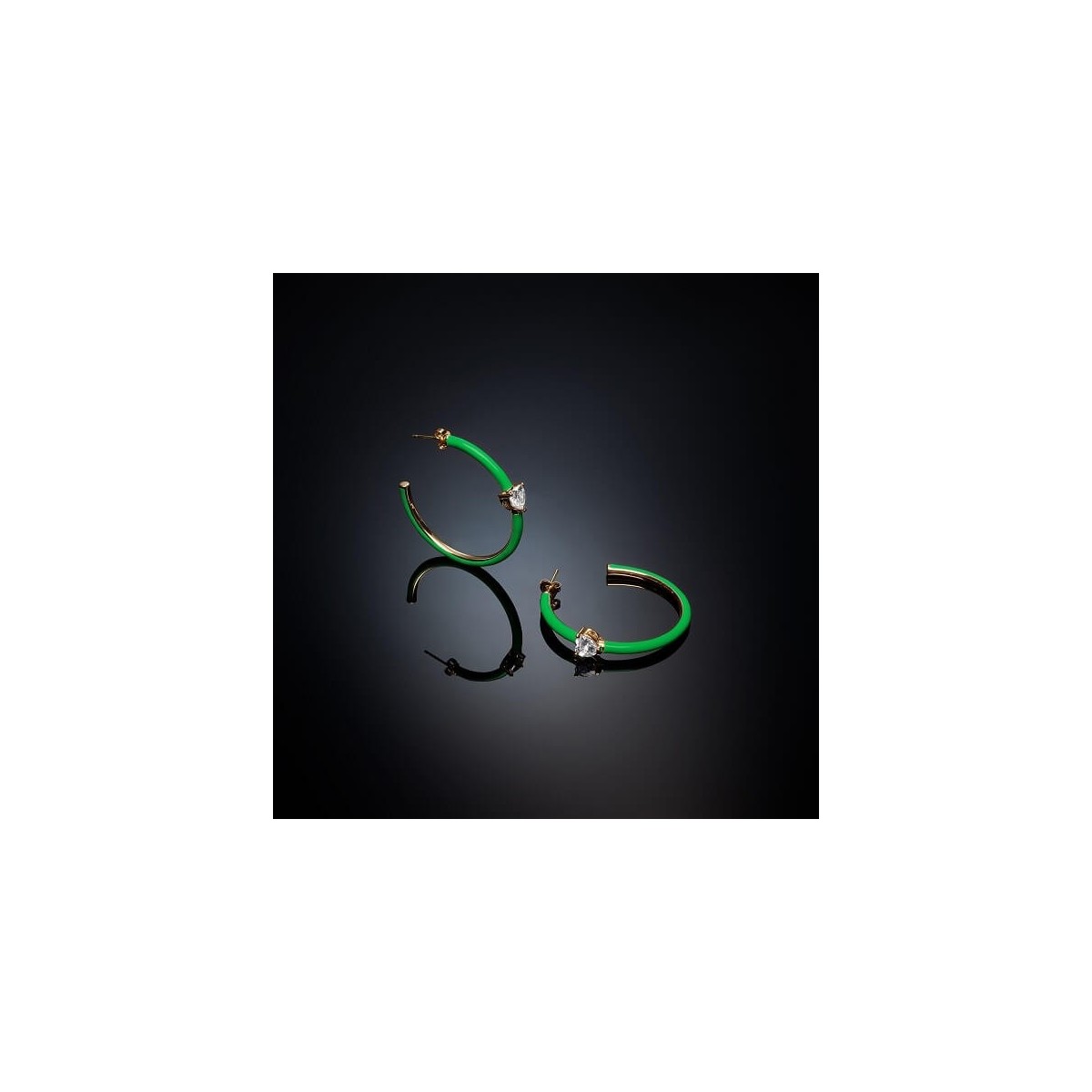 Green enamelled maxi circle earrings from the Love Parade collection and central white heart crystal