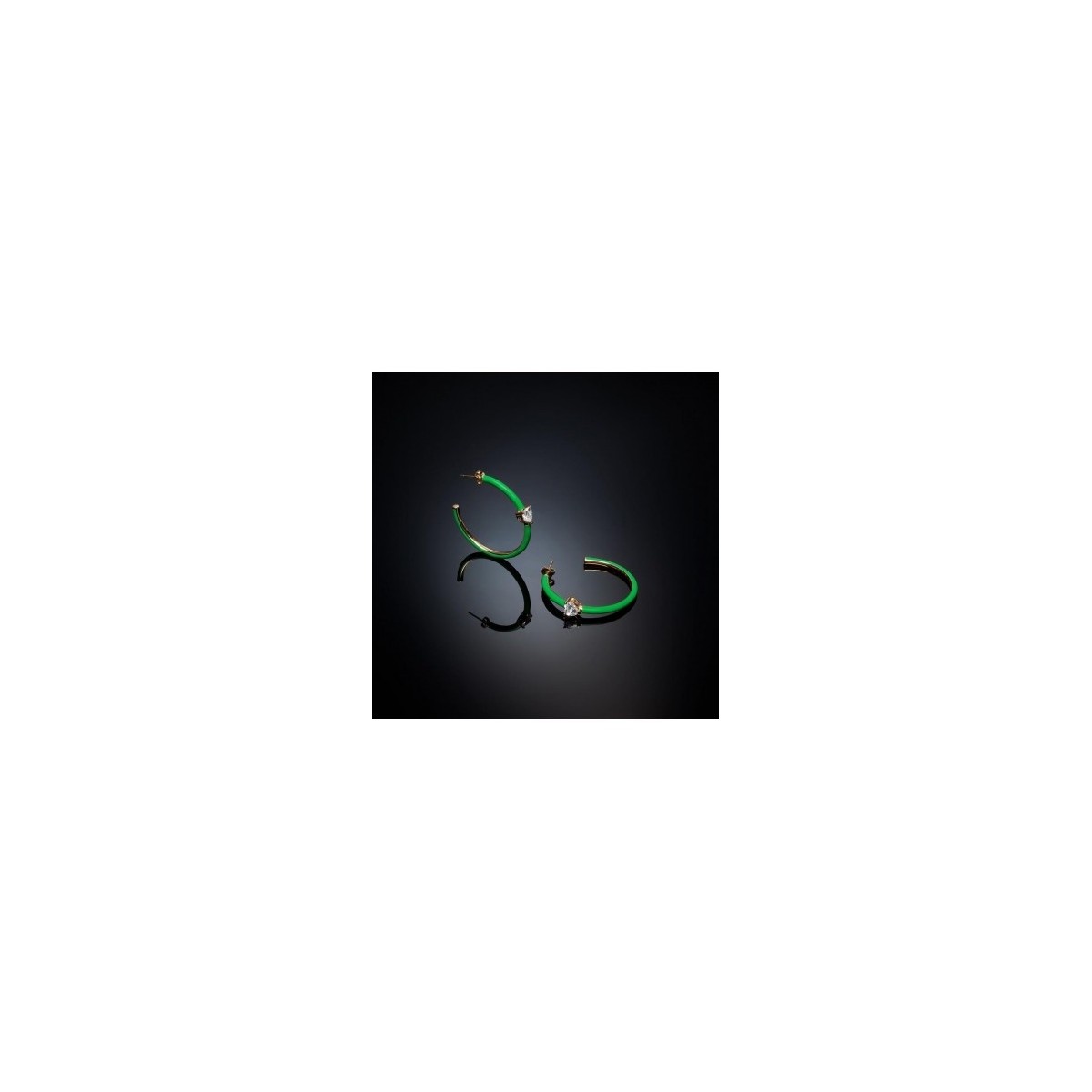 Green enamelled medium circle earrings from the Love Parade collection and central white heart crystal