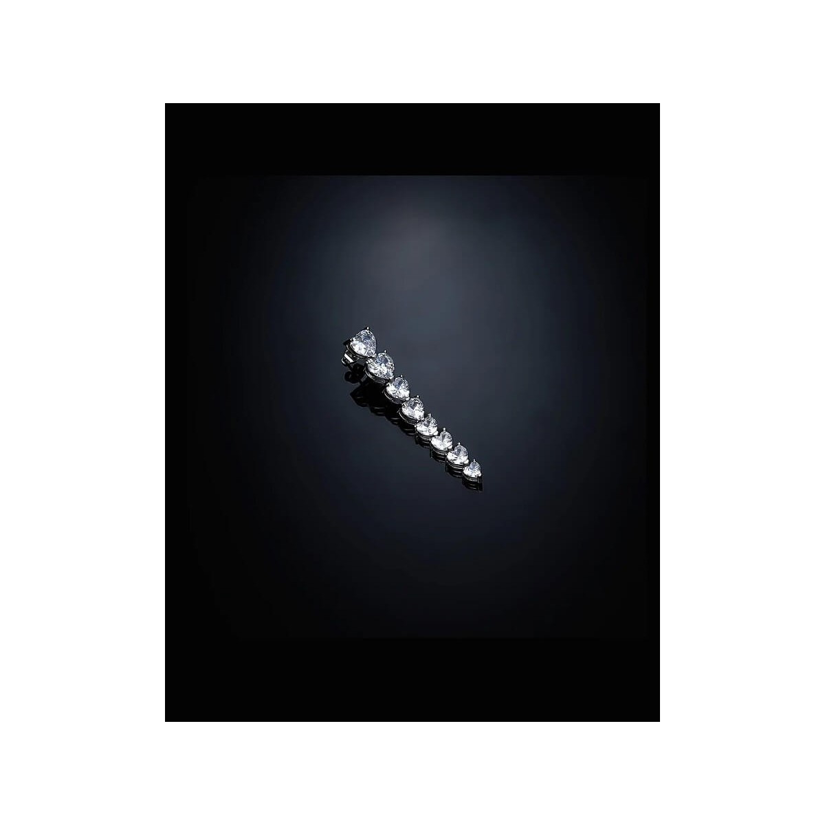 Single pendant earring signed by the well-known influencer Chiara Ferragni belonging to the Infinity Love collection. Jewel made of rhodium-plated steel, with decreasing white zircons and heart cut.