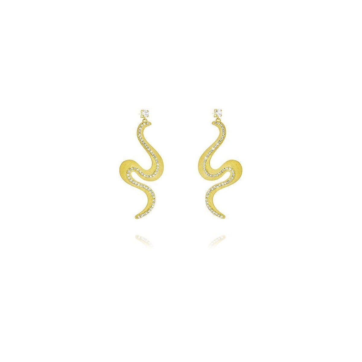 Snake shaped earrings in metal and gold plated with zircons line New Moon