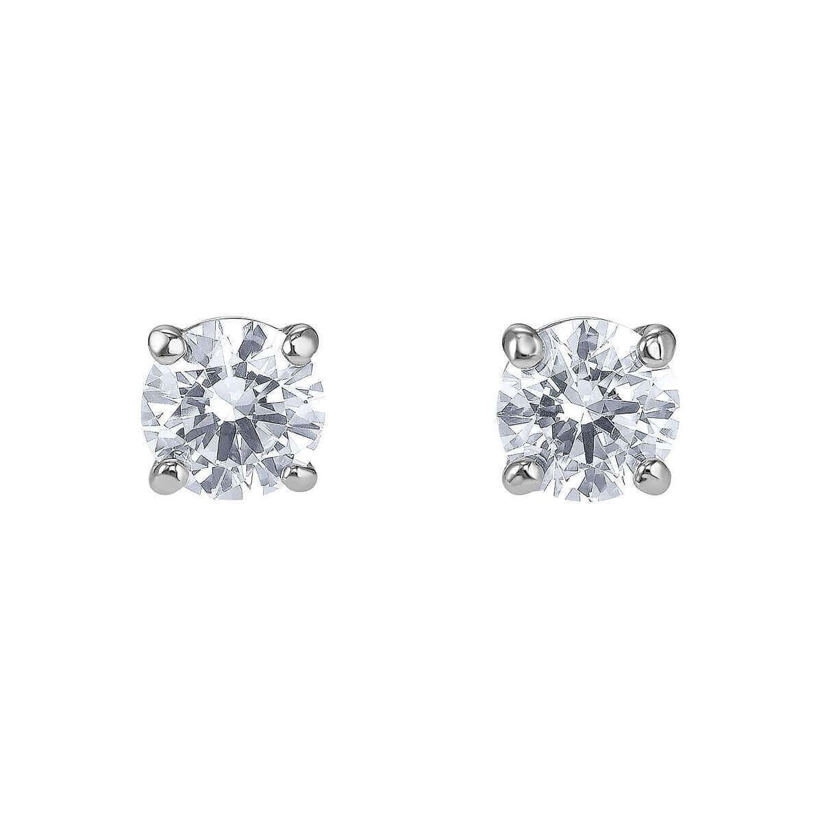 Medium stud earrings, from the Attract collection, with round cut white crystal with rhodium plating. Butterfly closure