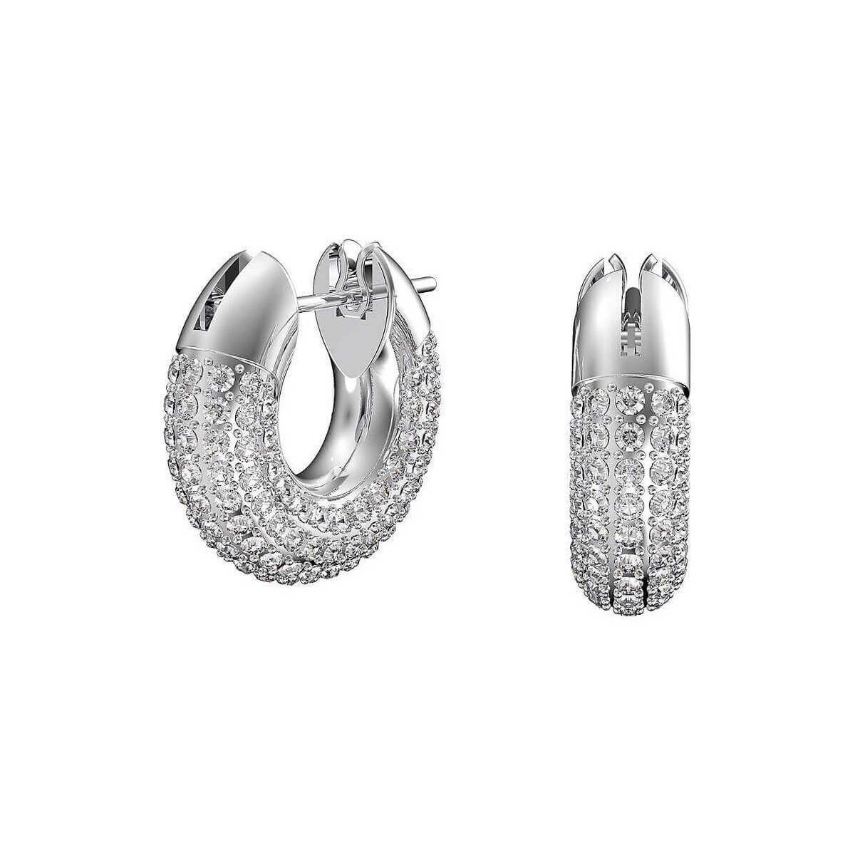Small Swarovski hoop earrings from the Dextera collection made of rhodium-plated metal with white crystal pavè that give shine to the wearer's face.