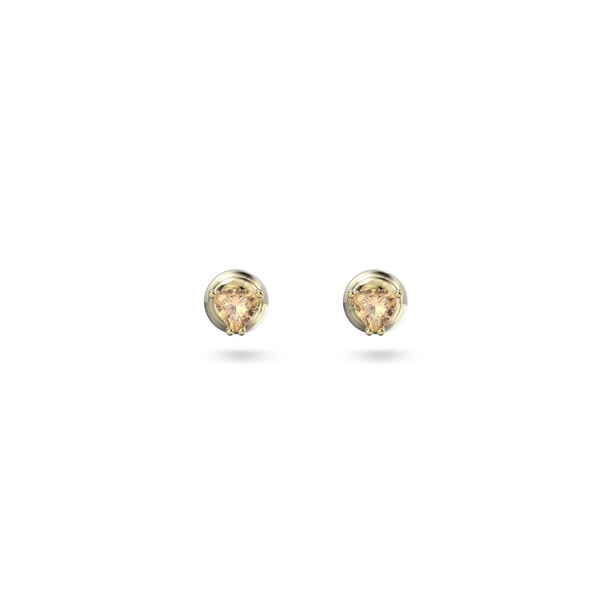 Swarovski women's earrings from the Stilla collection. Lobe jewel composed of trilliant cut crystal in a fun orange shade, mounted in claws on gaillo gold plating. It gives shine to the wearer's face.