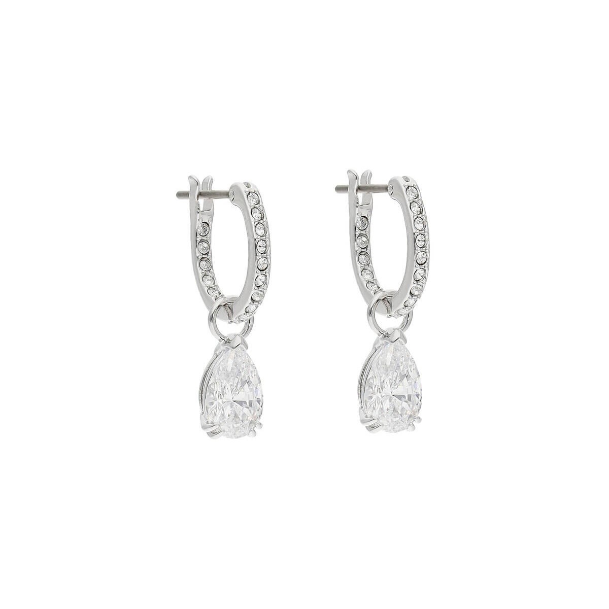 Swarovski women's earrings from the Millenia collection. The sparkling pear-cut central stones are enhanced by the pavé on the circles, set in a rhodium plating.