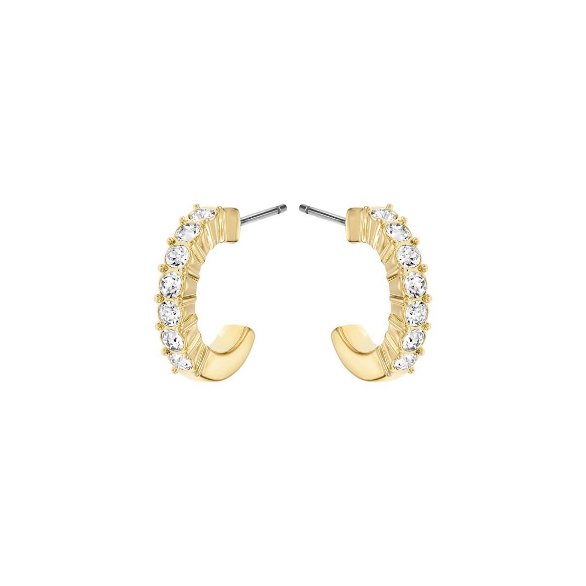 Swarovski circle-shaped earrings, from the Mini Hoop collection, yellow gold plated, embellished with clear crystal pavé. Butterfly closure.