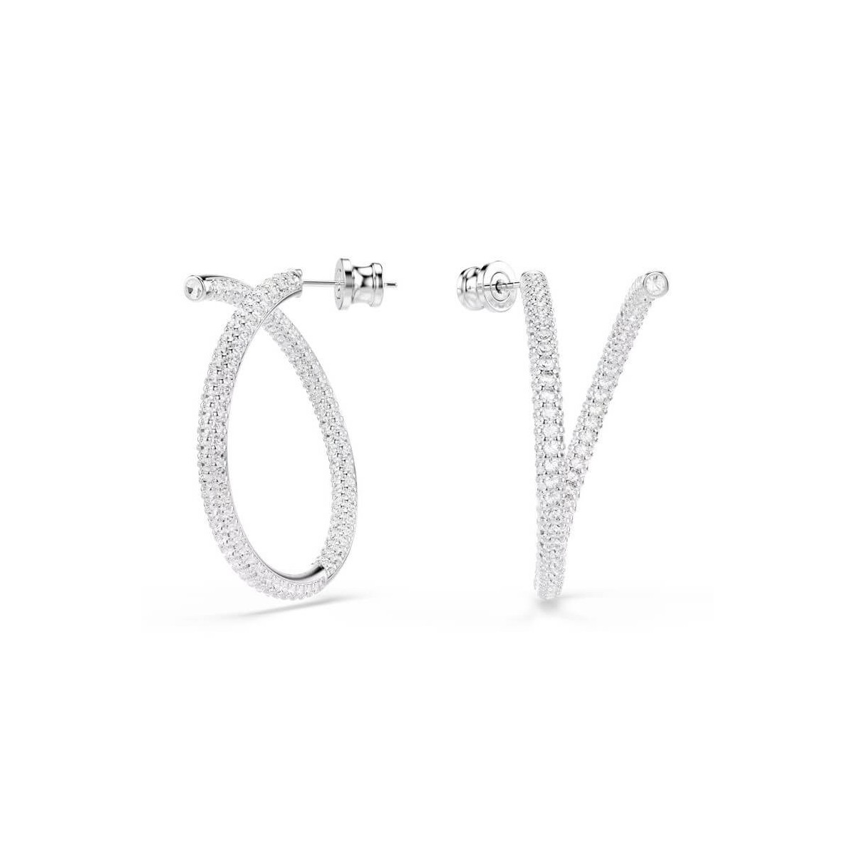 Dextera Swarovski Rhodium Plated Twisted Hoop Earrings with Pavé