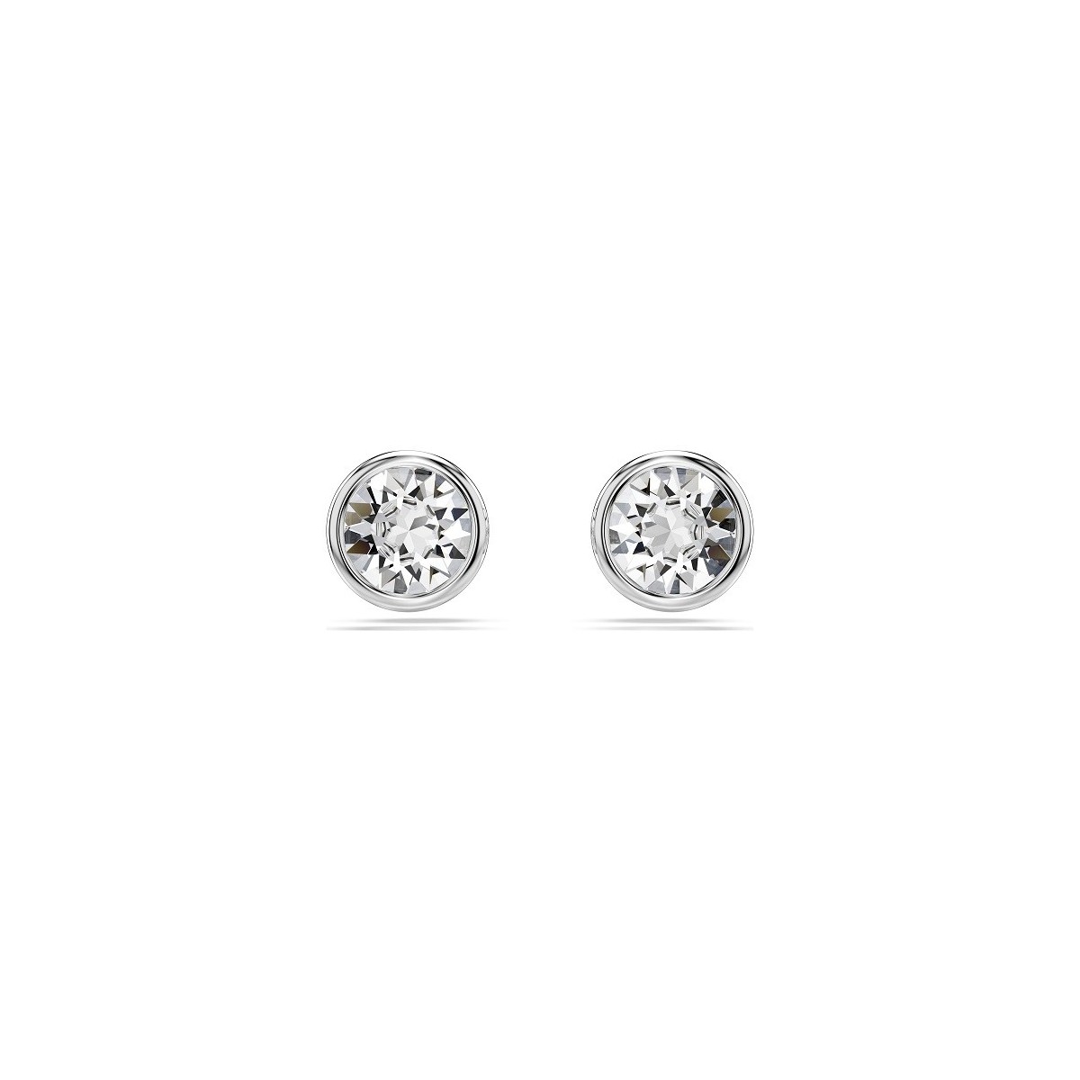 Earrings, from the Imber collection, for women Swarovski, enhance the interaction between geometry and light. The earrings are made with rhodium plating and feature a Round-cut crystal with a domed bezel setting.