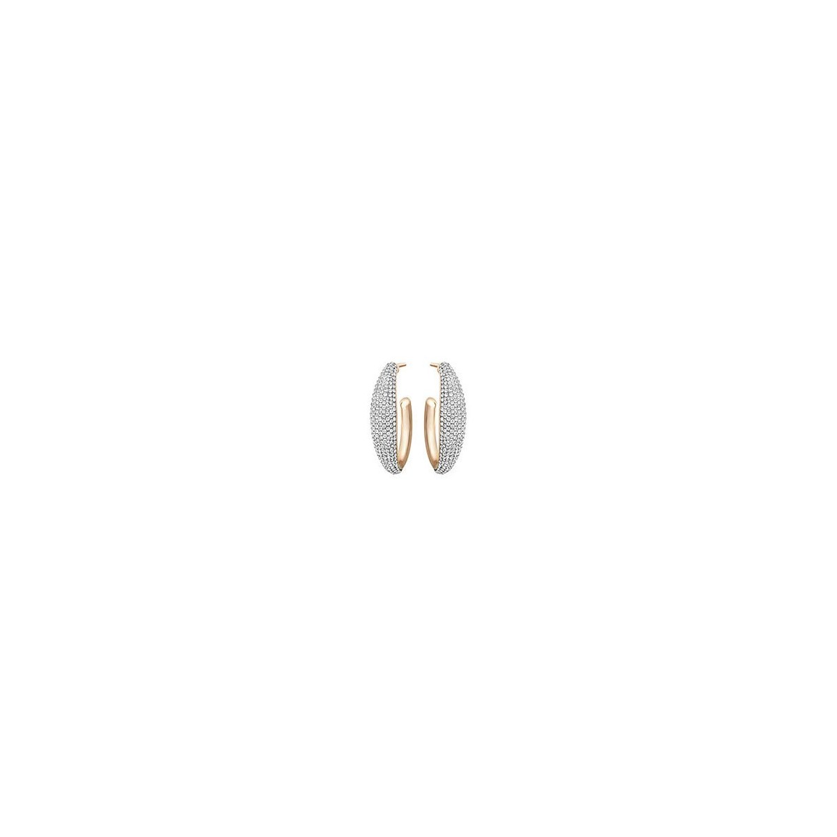 Essential and essential and distinctive badges, these circles interpret the current fashion, proposing a listing to curb chain mesh and the combination of various metal platings. Glossy surfaces and dark crystals applied with the exclusive Swarovski Pointiage ® define a refined and trendy creation.