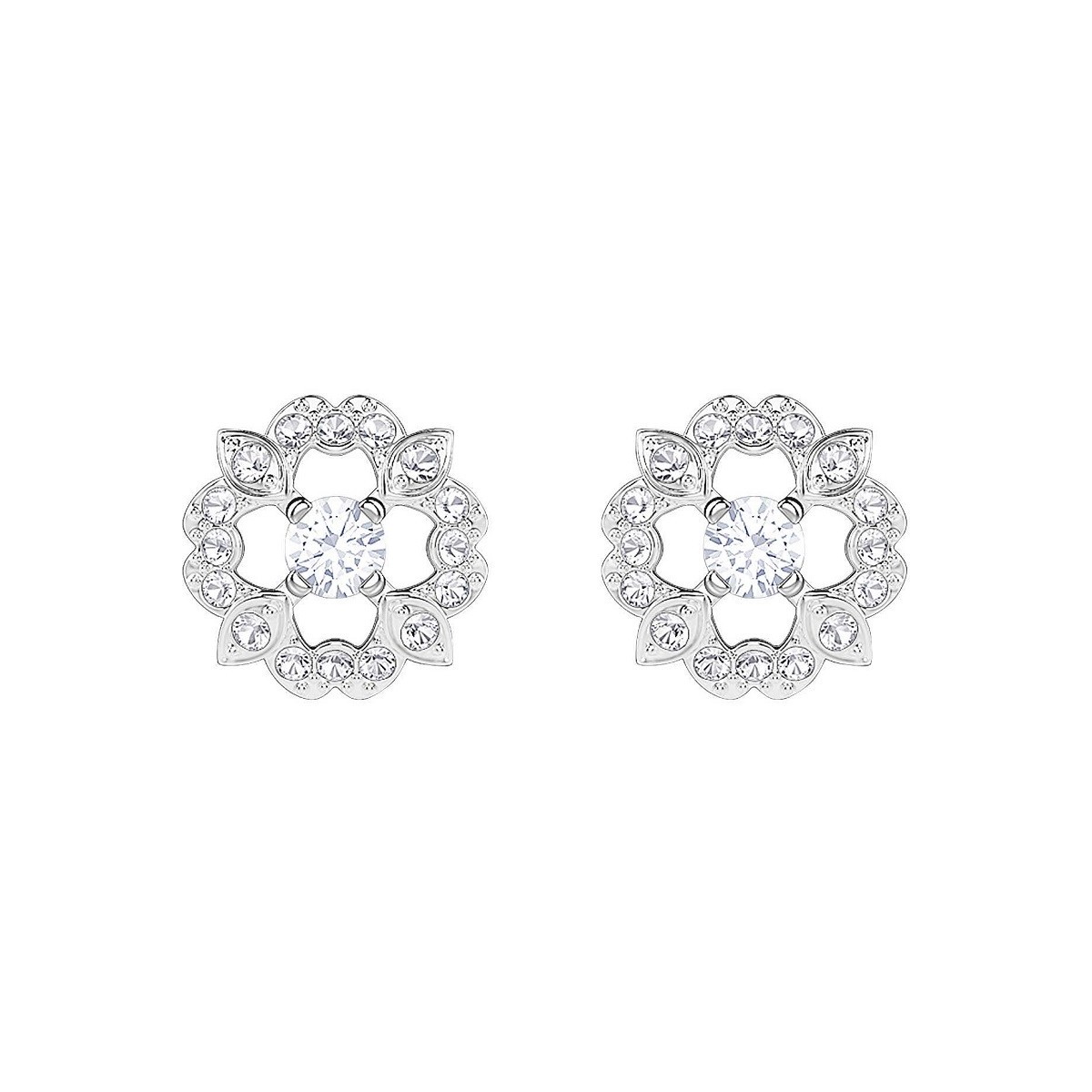 Woman earrings, a lobe, flower motif with central crystal and nailed fastening