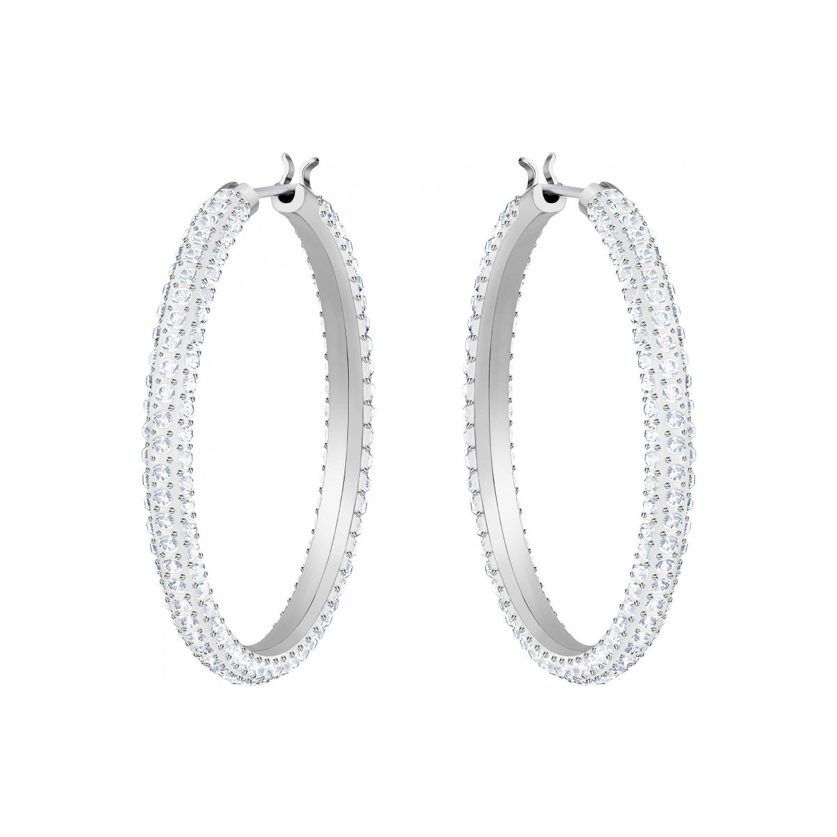 Women's hoop earrings with application of white crystals and 3.5 cm nail closure