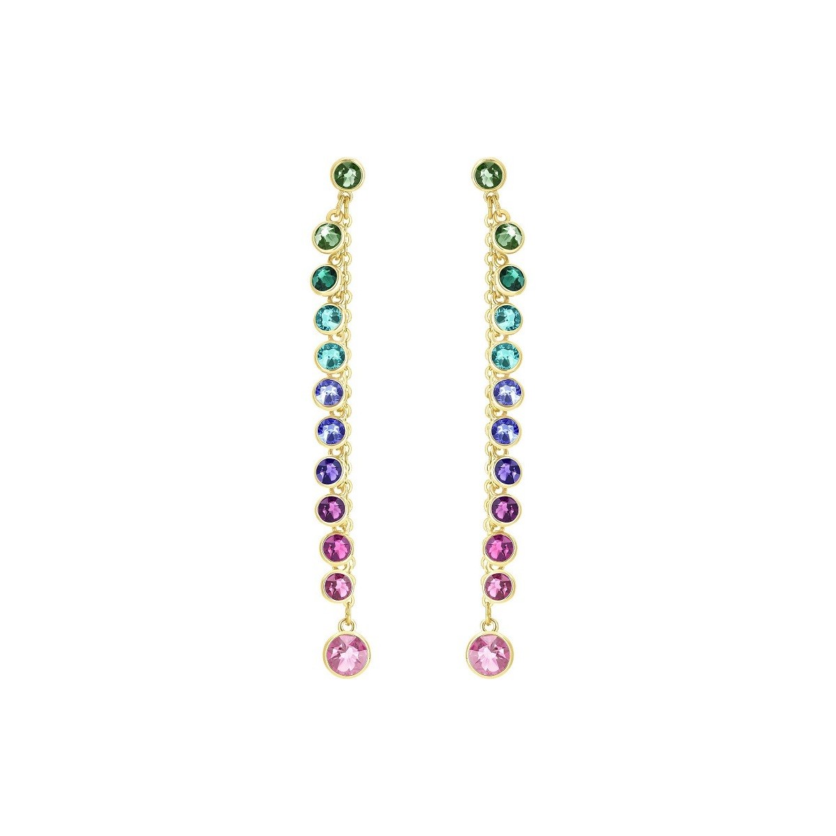 Drop earrings with colored crystals flush with final pendant, nail closure, gold-plated yellow