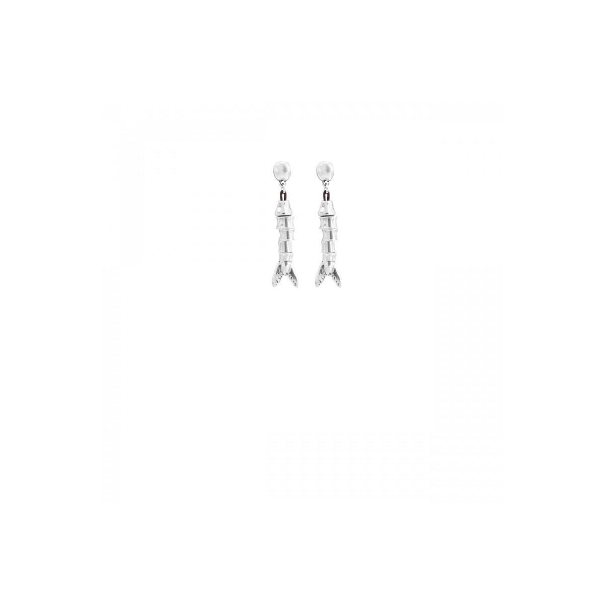 Women's earrings in silver coated metal in the shape of a fish contains more sovrappostte nuggets