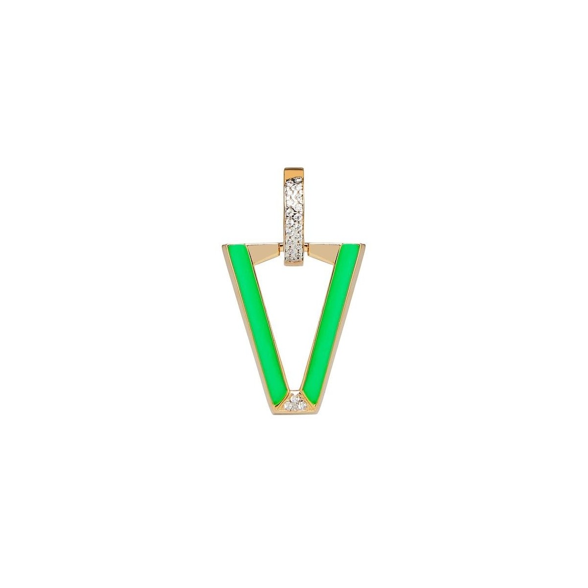 Uali Green Valentina Ferragni mono earring in 925 silver, 24 kt yellow gold plated with Green wetting and white zircons pave
