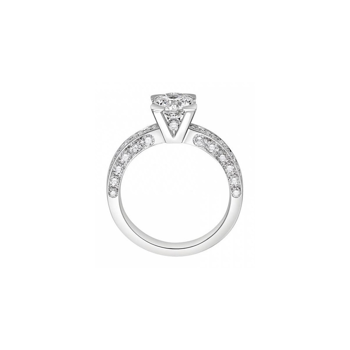 A refined pave of brilliants on the three sides of the setting add so much importance to the central diamond without overshadowing it