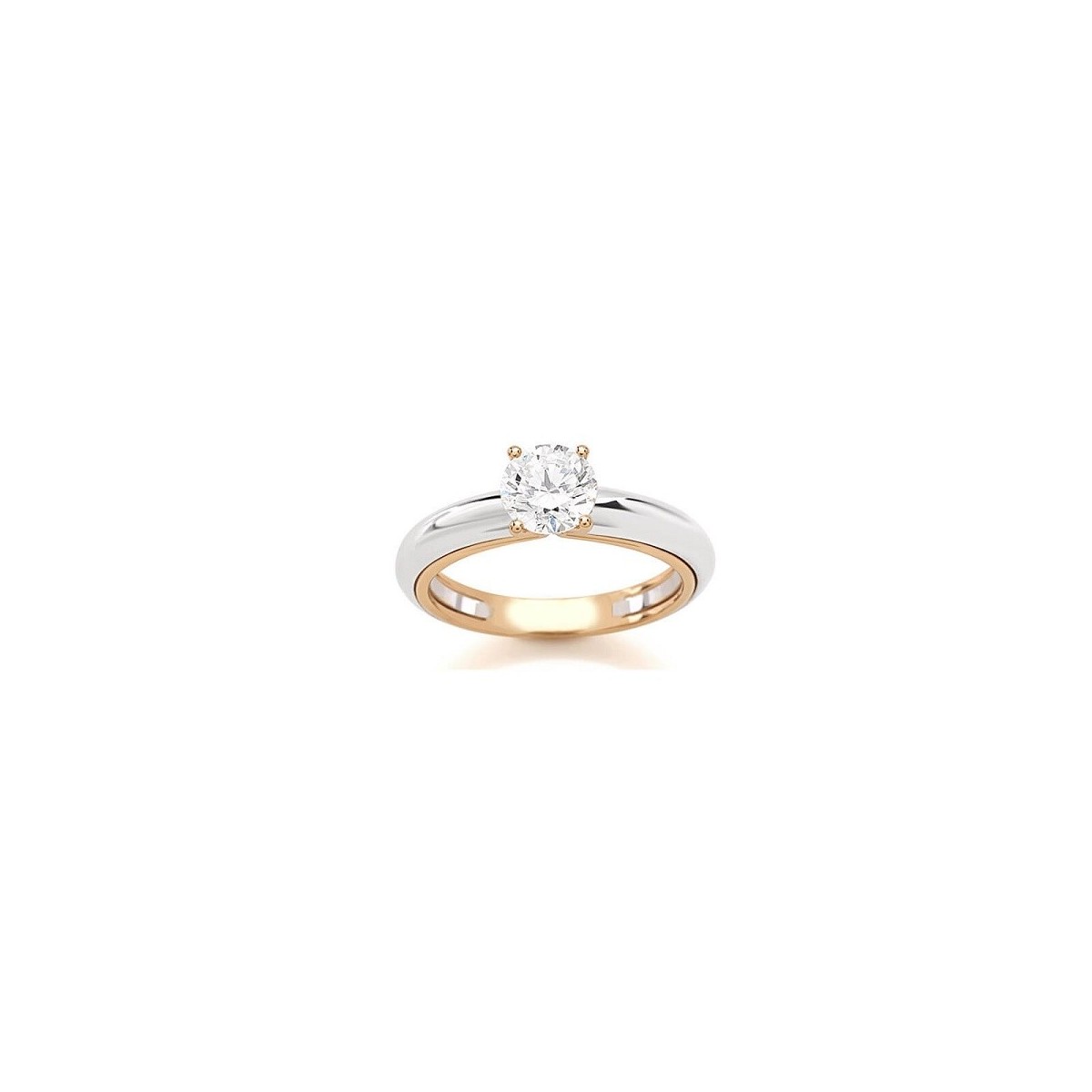 Engagement / wedding ring in 18kt white gold externally and internally rose with central brilliant cut natural diamond mounted with four claws.