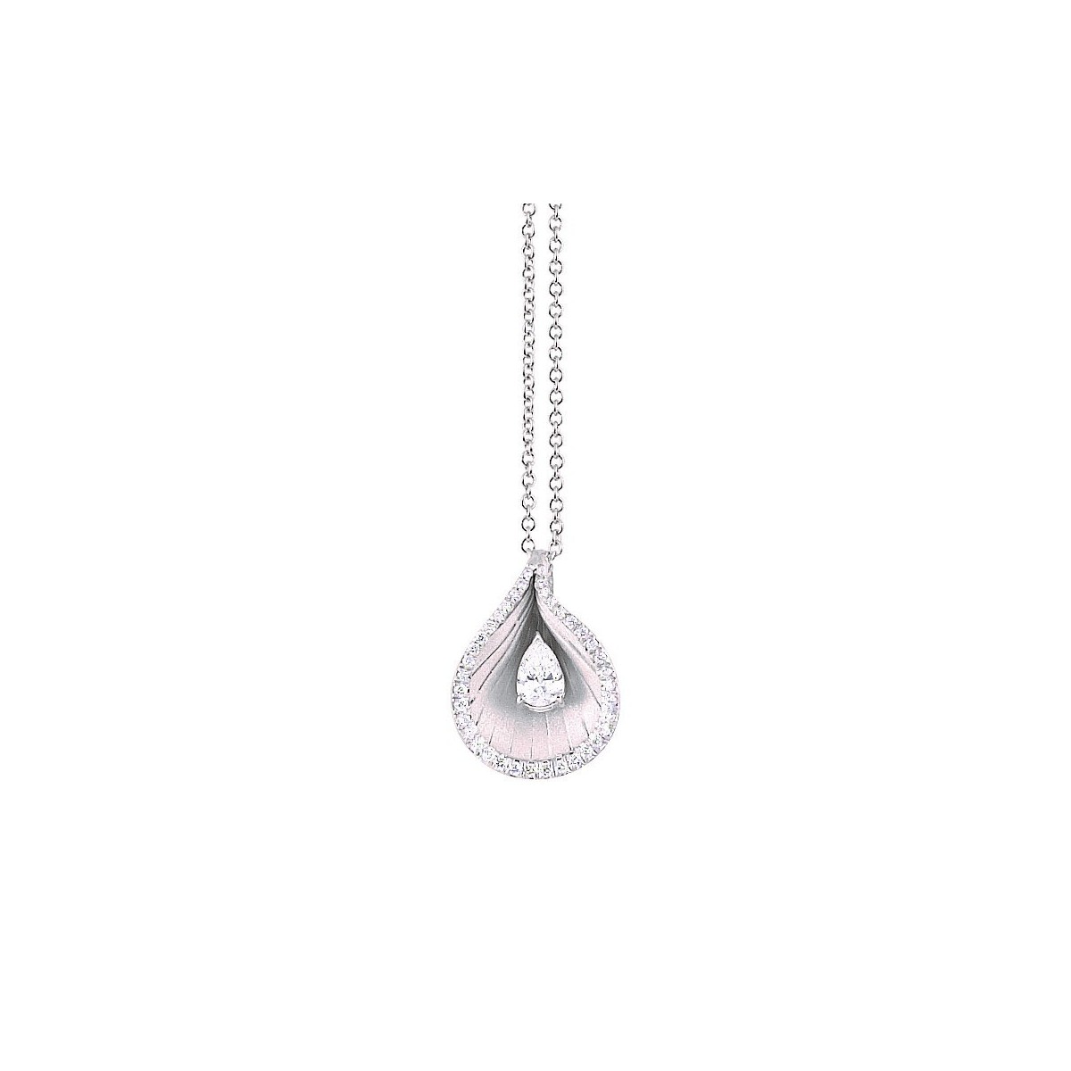Necklace Collection " Premier " in gold 750 ‰ and natural diamond , brilliant cut (outline ) and cutting Drop ( central )