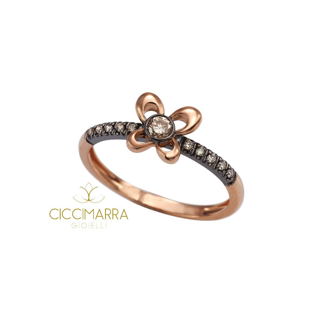 Ring, Y-ME line, in Rose Gold and 18kt black rhodium with butterfly and central diamond Natural brown and diamonds on the stem of brown color - AXM119C8M