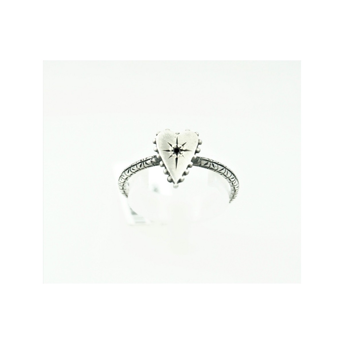 Little ring 925 silver satin and burnished Eight Jewels heart-shaped elongated side studded black diamond and stem worked-AO324 255