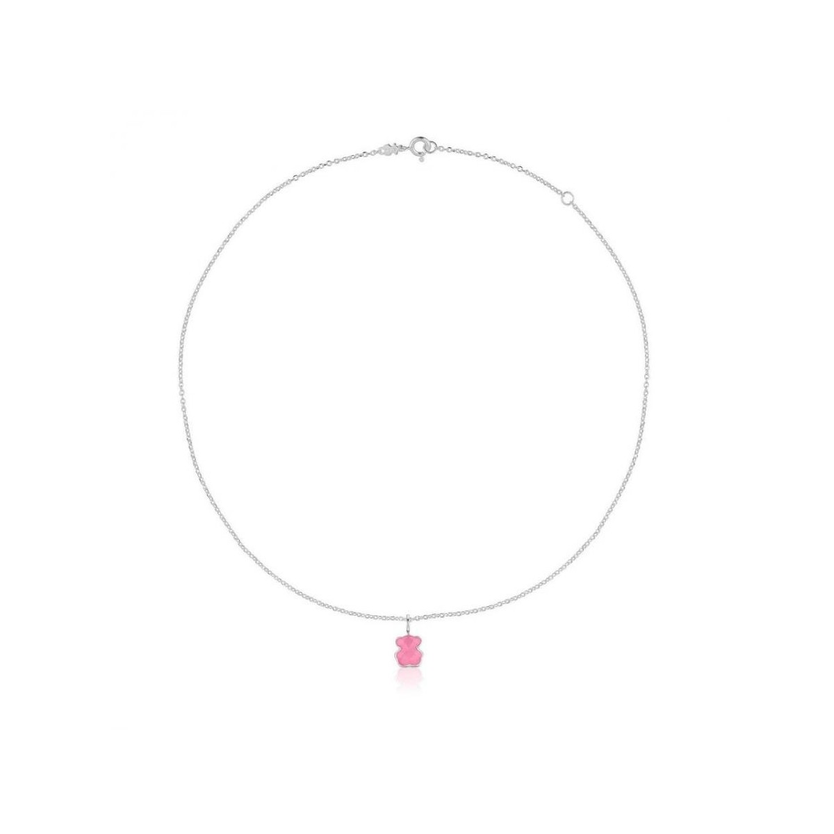 Tous rose quartz pendant necklace with pink bear. Also available with black pendant