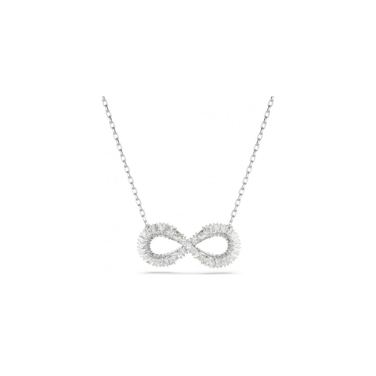 Swarovski women's gyro necklace, from the Hyperbola collection, made with rhodium plating. The jewel has a central pendant with an infinite motif expertly composed of white Swarovski Zirconia which gives the jewel a luminous effect. Lobster clasp closure.
