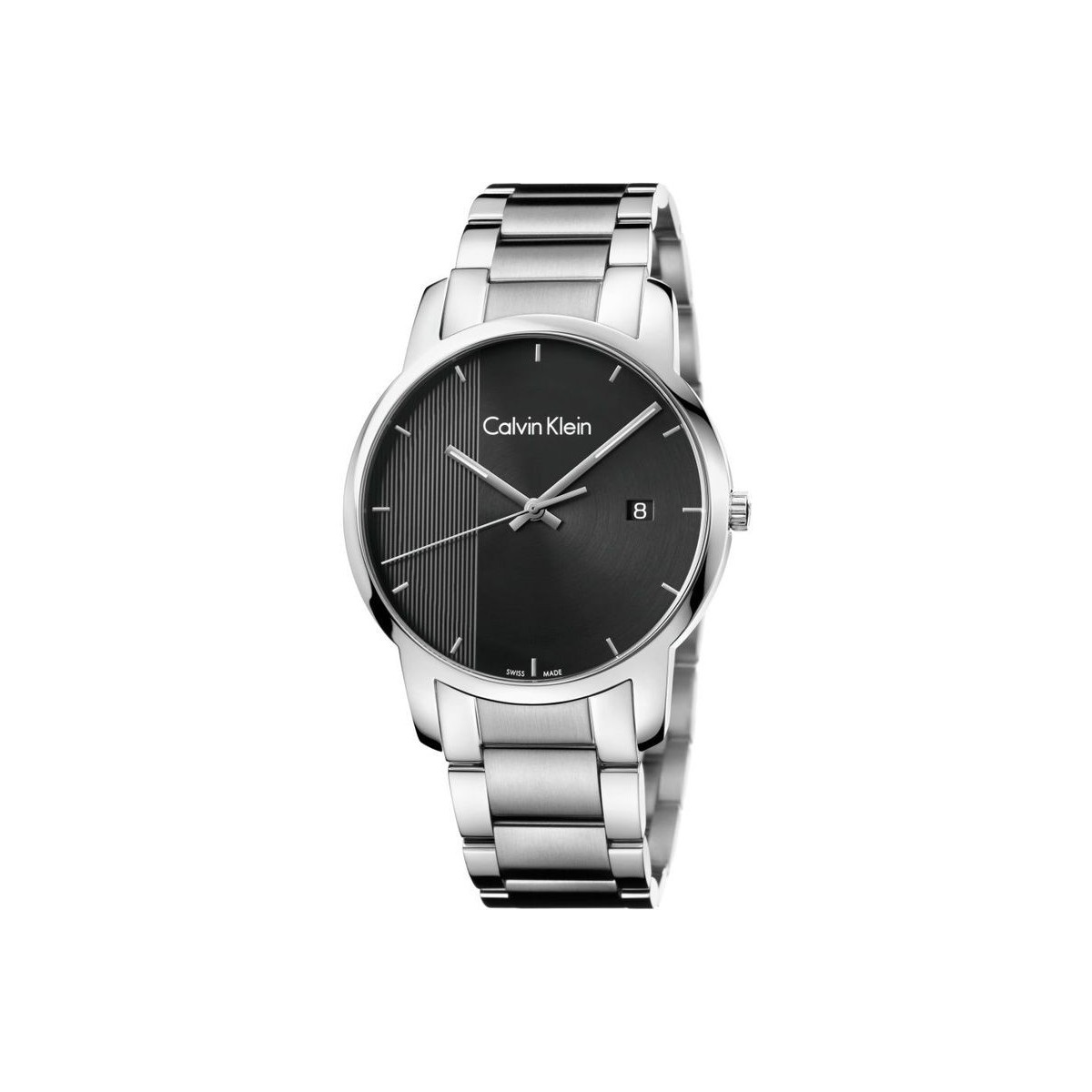City Line Watch with quartz movement, steel case and strap, black dial with silver and date indexes