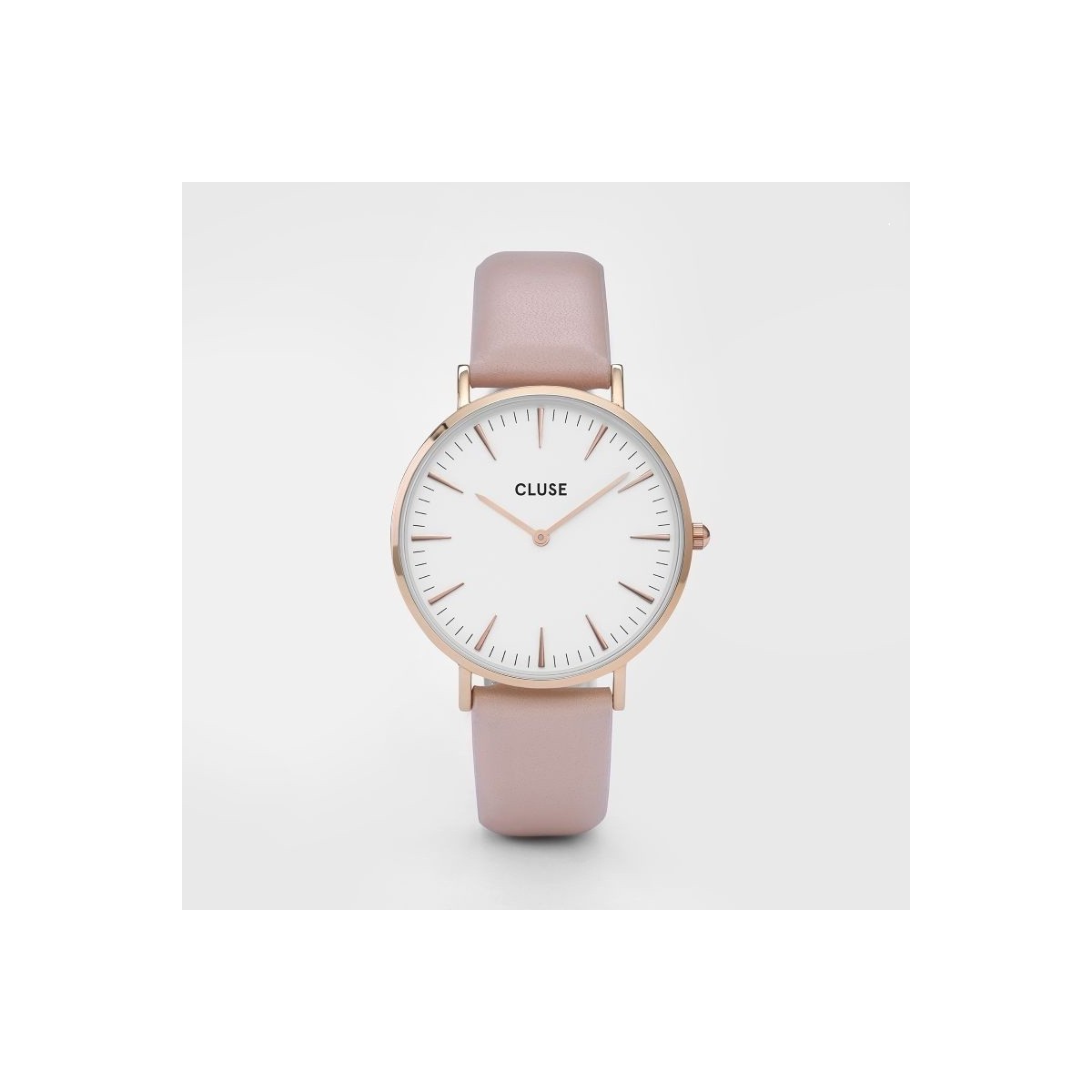 Ladies' watch collection La Boheme with pink leather strap, pink gold coated case and buckle, quartz movement, white dial with pink gold indices and hands