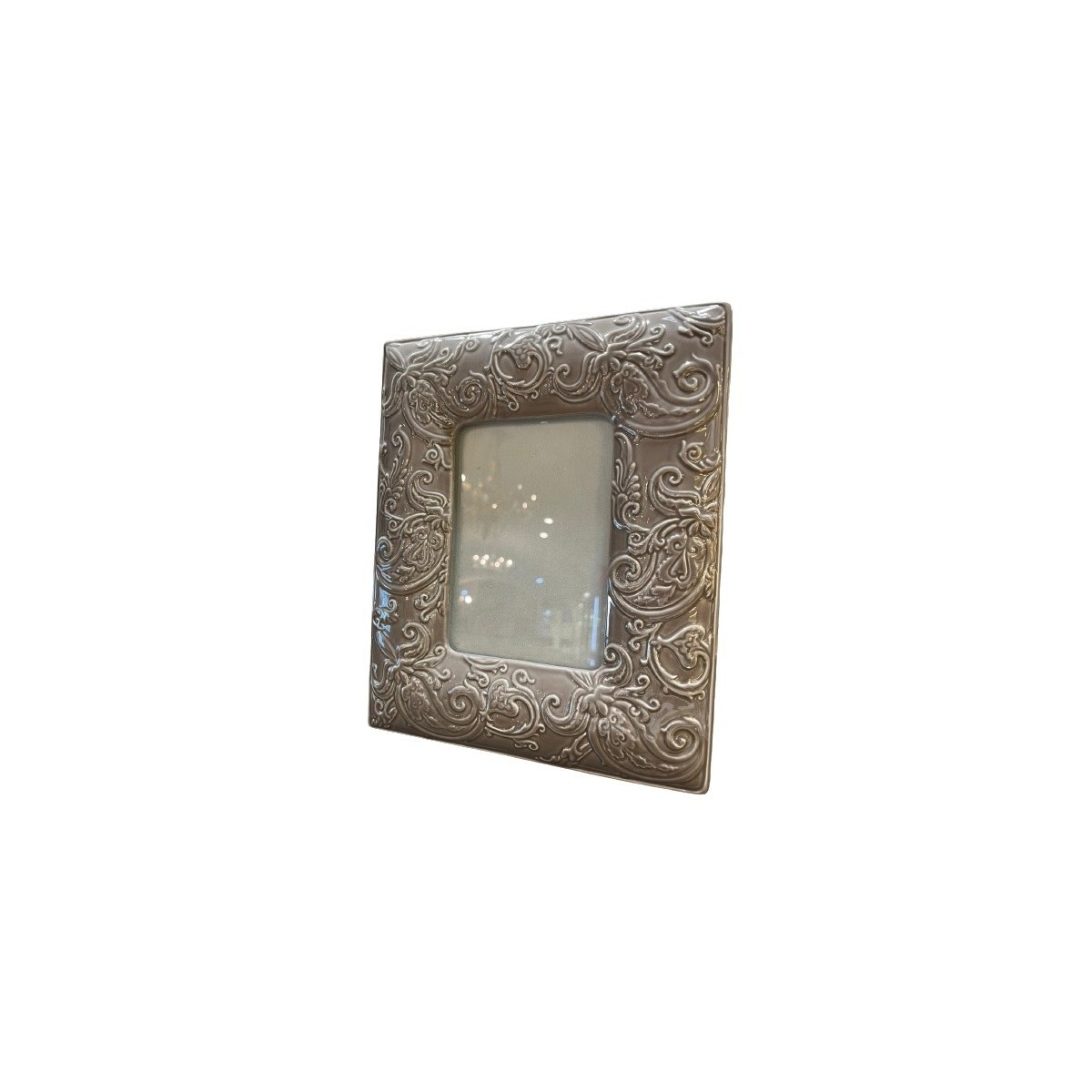 Etro Home Accessory frame, from the Rilievo collection, 100% ceramic Made in Italy worked, glossy gray.