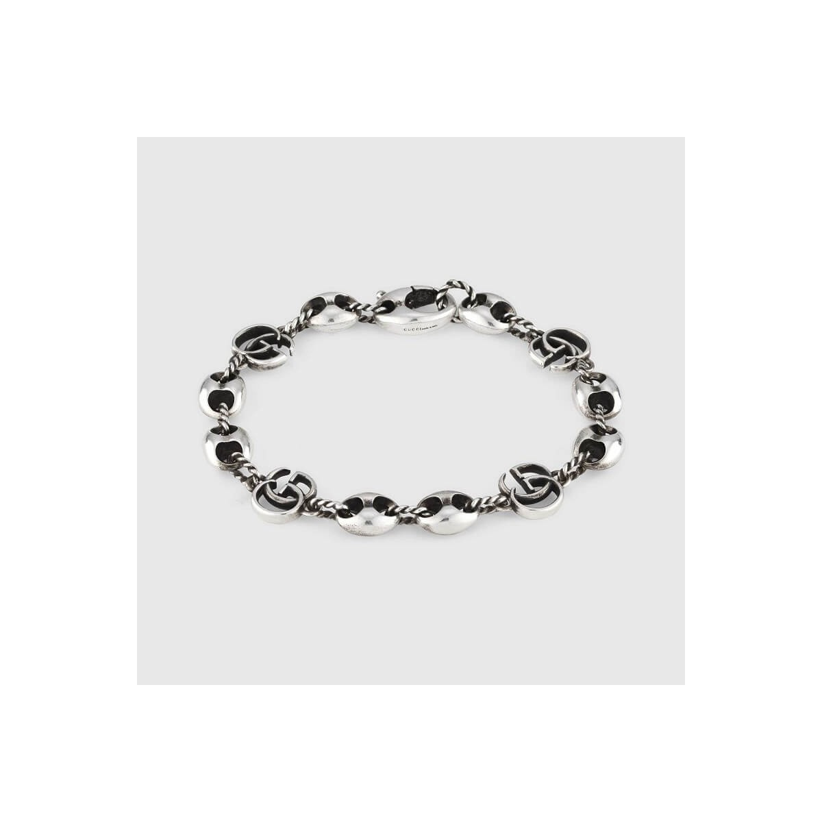 The antiqued bracelet in 925 silver features the Double G logo that combines with the Marina chain for a timeless mix that reflects the Gucci tradition.