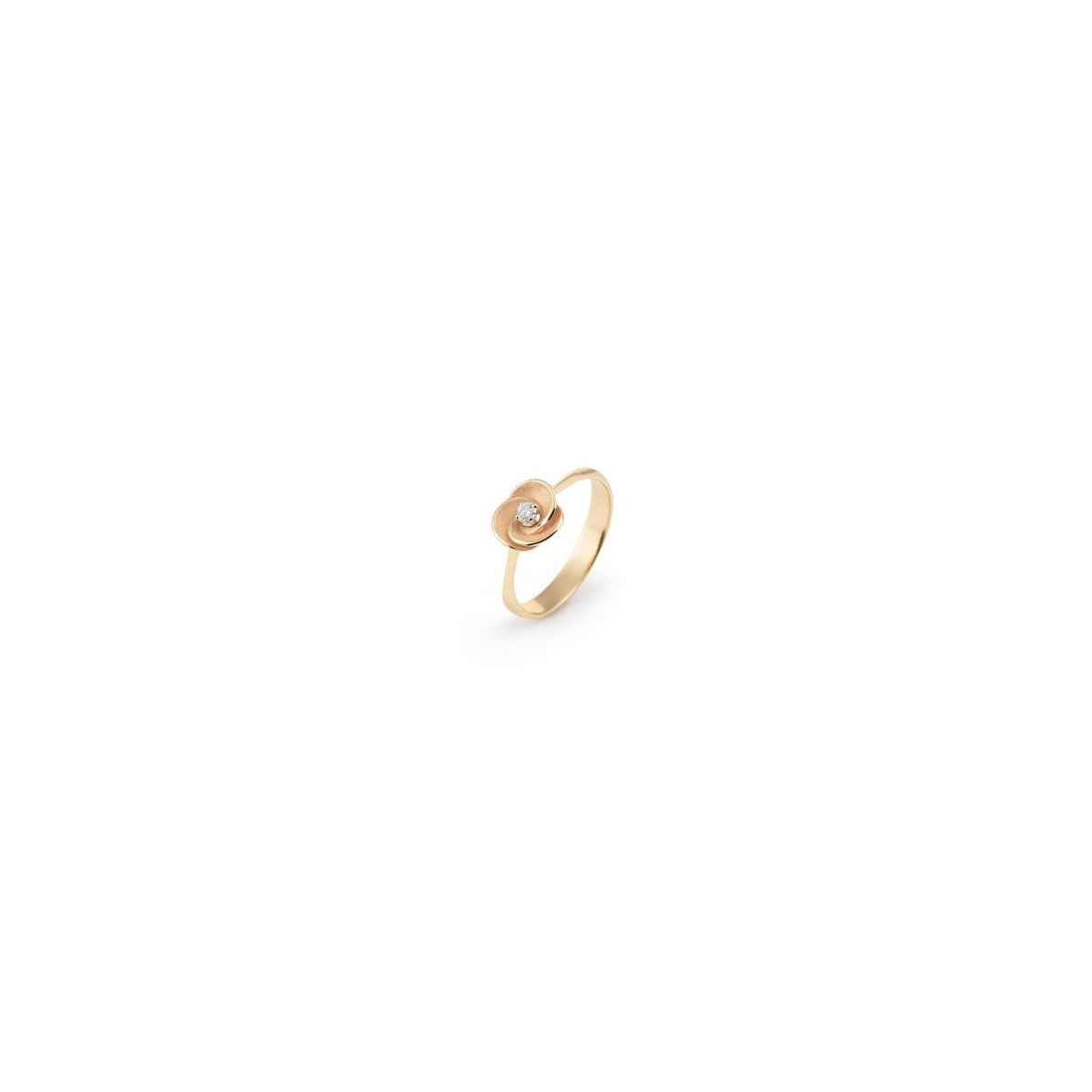 Ring with Desert Rose collection flower in 18kt apricot yellow gold and 0.06 carat natural diamond.