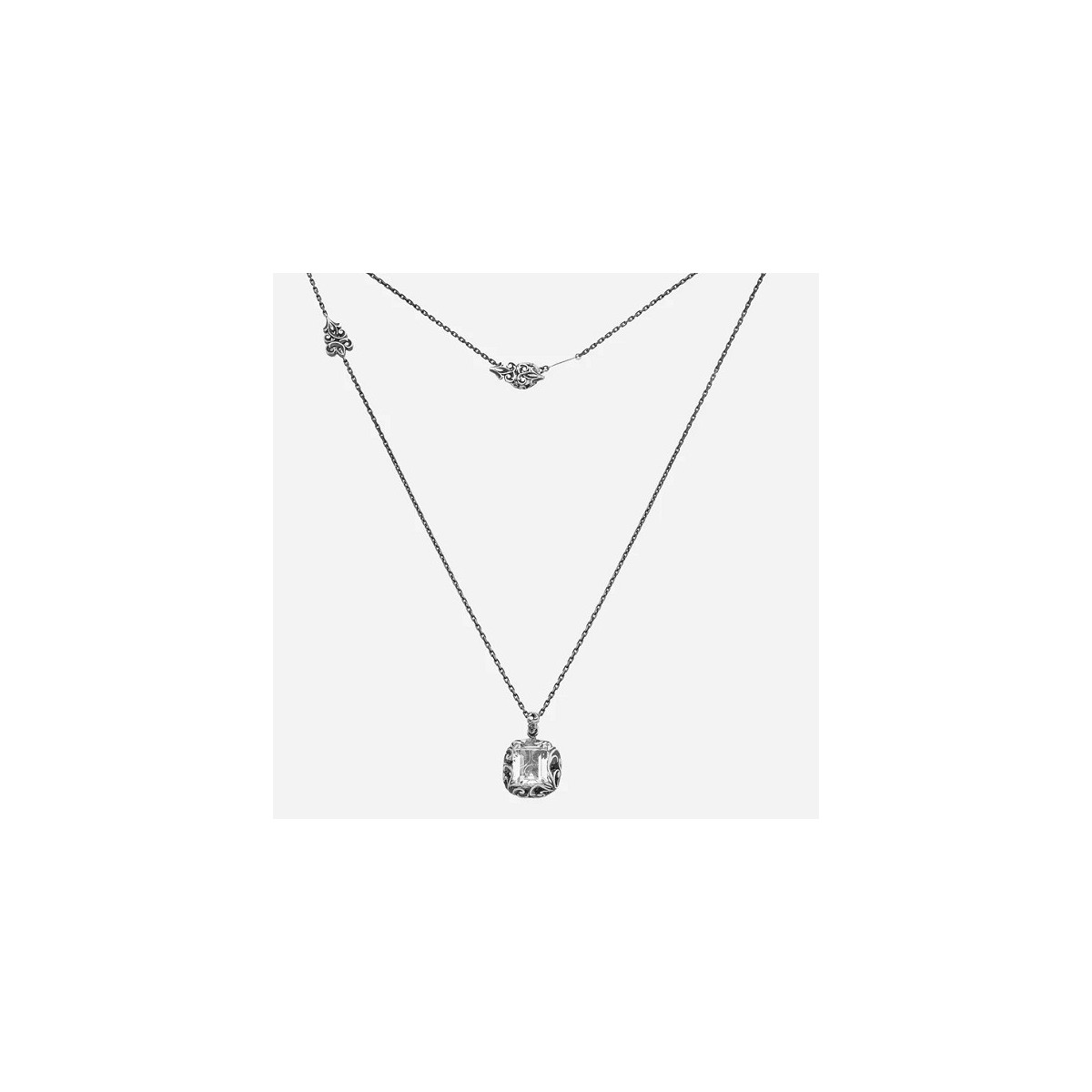 Maria Luisa Jewels necklace with rectangular pendant in rock crystal and hand-inlaid burnished 925 silver.