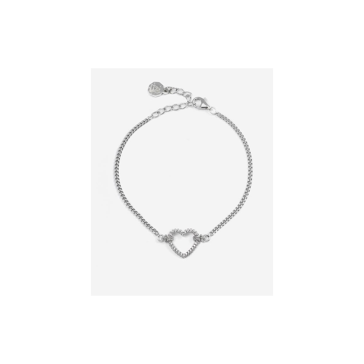 Women's bracelet from the Opulence collection in 925 silver, curb with dotted heart, snap hook closure.