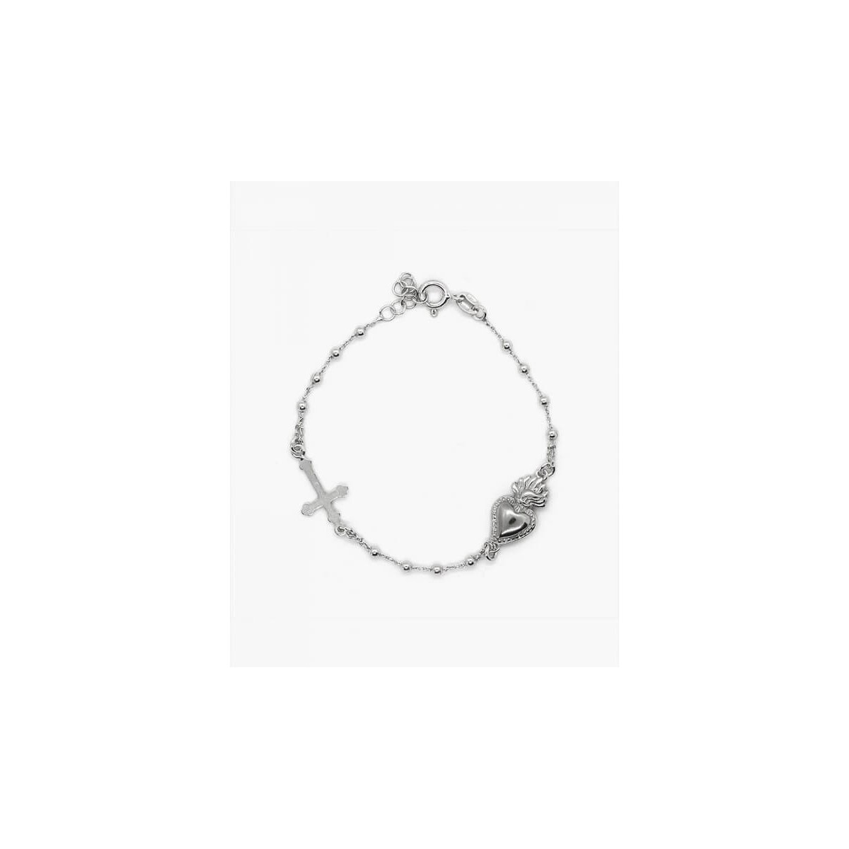 Rosary bracelet from the Traditional collection in 925 silver with ex voto heart and gothic cross, handmade with lobster clasp.