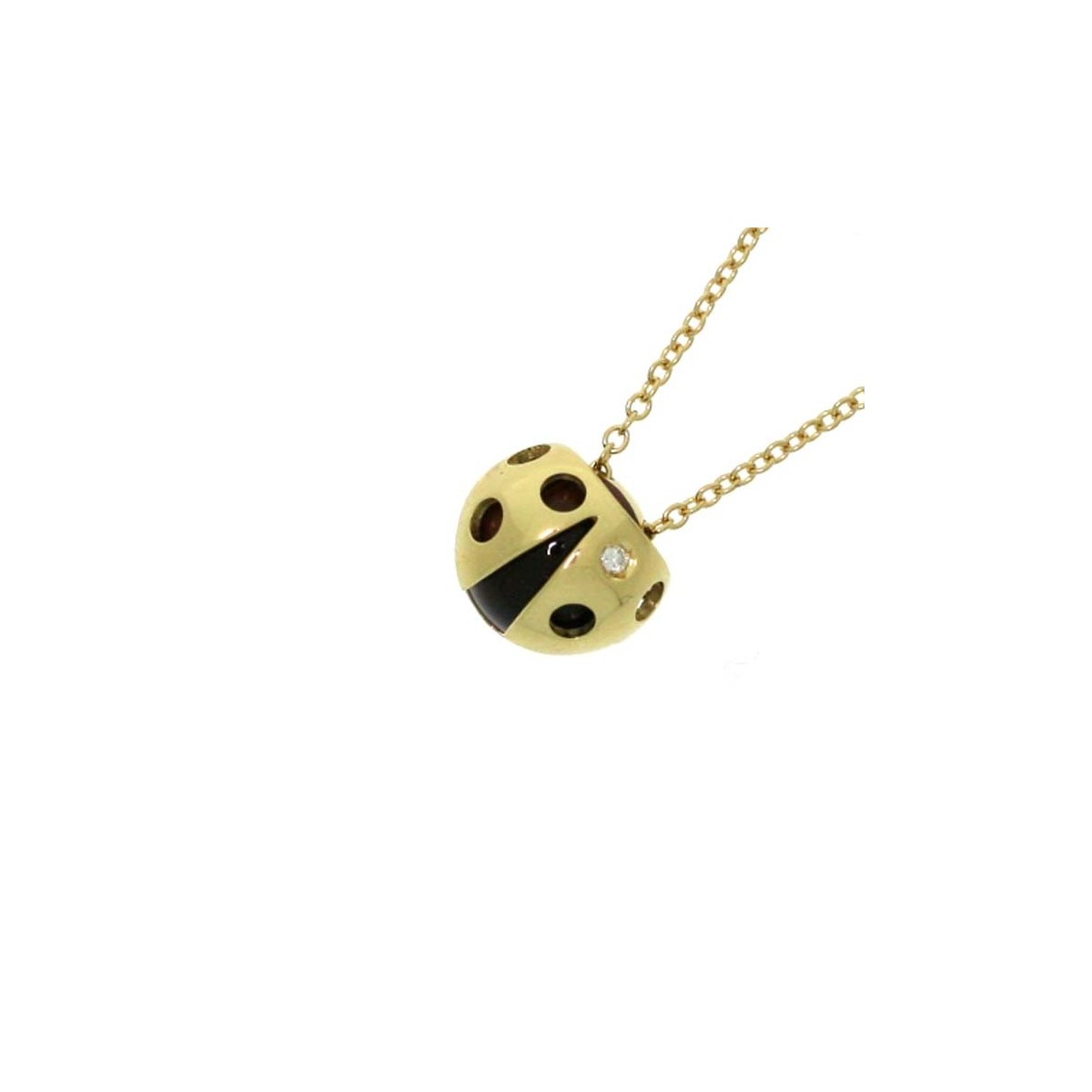 Salvini women's necklace, from the Coccinelle collection, made of 18k yellow gold and ladybug pendant made up of a tiger's eye embellished with a natural brilliant-cut diamond of 0.01 carats in total.