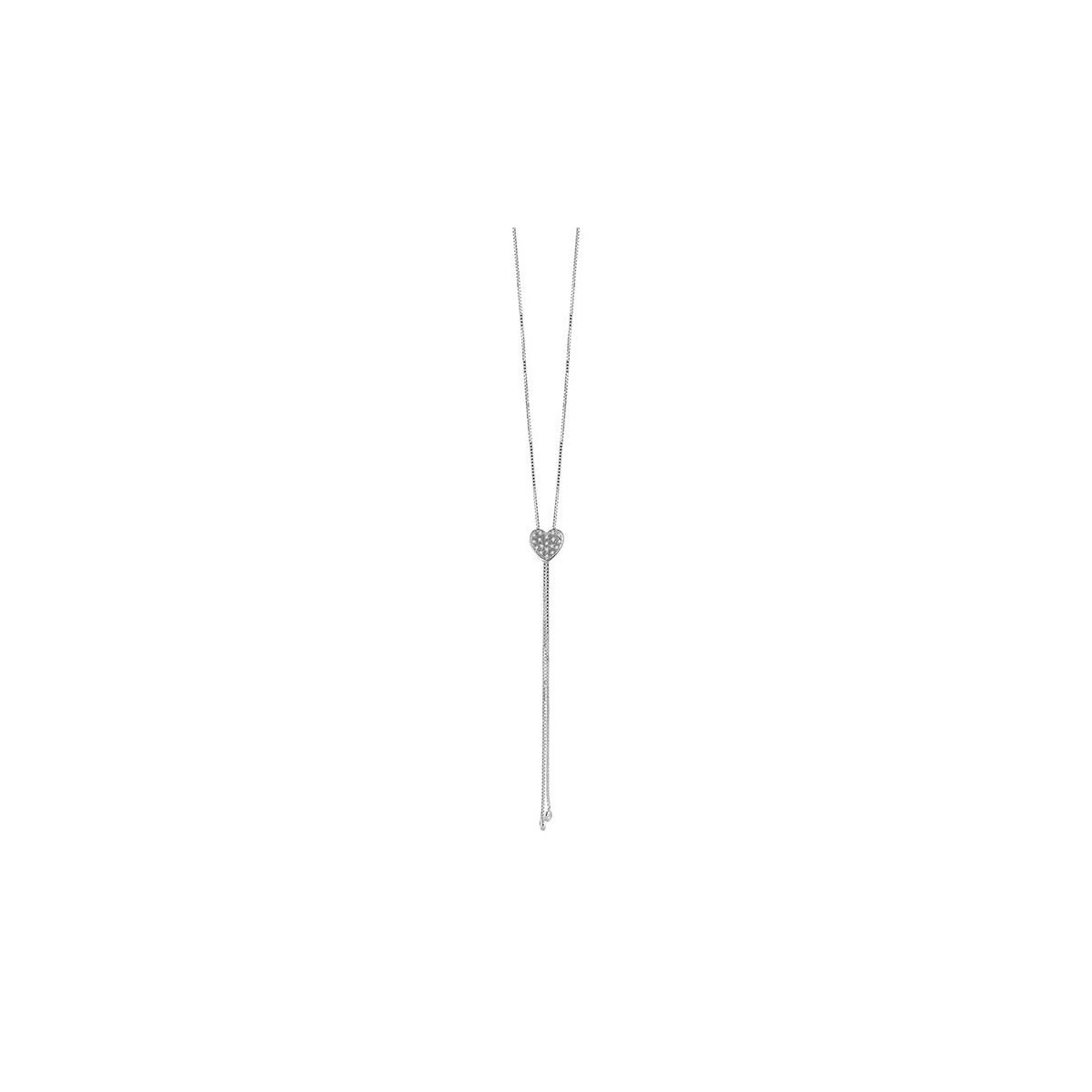 Salvini women's gyro necklace from the I Segni collection made of 18k white gold with a heart motif pendant embellished with a pavé of 0.09 carat brilliant-cut natural diamonds. To complete the jewel, two pendant chains with a natural brilliant cut diamond placed at the end.