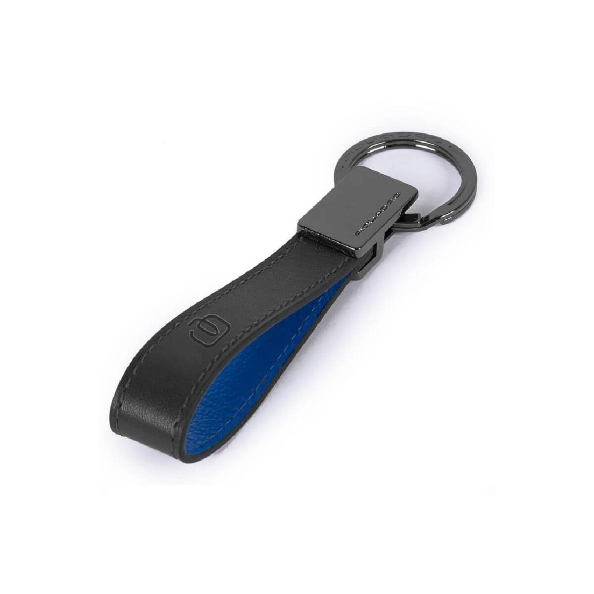 Piquadro keychain from the Bold collection made of blue cowhide with a fine grain and soft to the touch with burnished metal logo and ring.