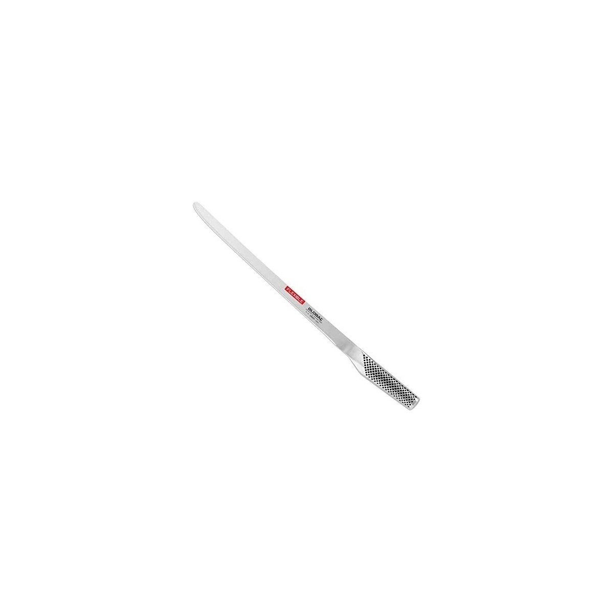 Knife of the Japanese brand Global Knives of the G-10 line made of Cromova 18 metal with a thin flexible blade, ideal for slicing salmon or cutting a ham thanks to its blade that flexes in a gentle way. Length 31 cm. The long handle allows you to better handle the knife during cutting operations.